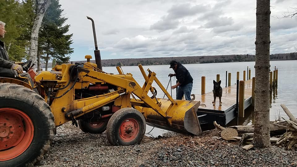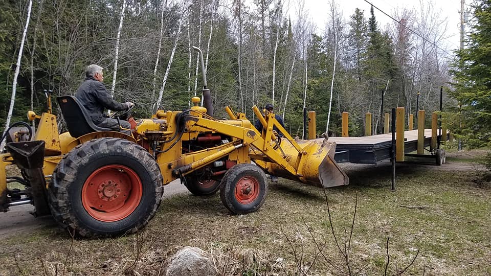 May 10, 2019. Who “launches” a dock? Yoopers do! Most personal docks in the far north can’t withstand crushing ice, so our docks are pulled out of the water in fall and returned to the water in spring. Our dock is 64 feet long and 7 feet wide. Jeff built it on the frame of a house trailer and added six legs that anchor it to the bottom of the bay. (And wheels to get it in and out, of course.) He also built the picnic table that will soon sit at the end of it.