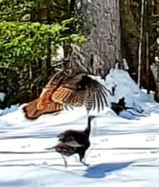 April 17, 2020. Wild turkeys visited Camp Many Moons today. They’re becoming a common sight around here. They look clumsy and silly on the ground, but surprisingly powerful when they take flight. I remember a college friend who was homely and uncomfortable in his shoes, but beautiful and graceful on the ski slopes. Most animals – including humans – have an ugly side and a beautiful side. Which side you see depends a lot on the circumstances in which you encounter them.