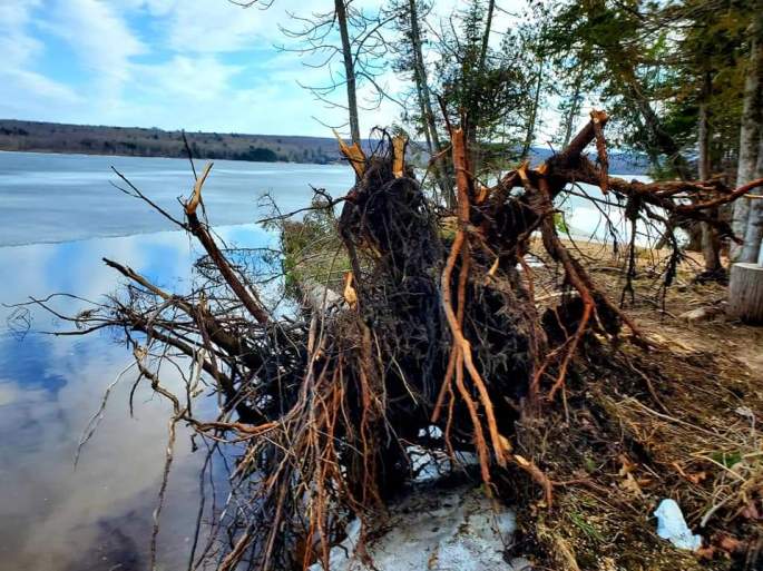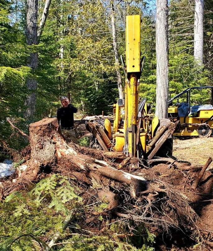 April 24, 2020. In the far north woods, nature can kick you in any season. A late-November storm brought down dozens of trees and cluttered Camp Many Moons with fallen branches and brush. My little patch of heaven is a mess. Cleaning it up is back-breaking work. What would I do without Jeff and his back-hoe and bulldozer and tractor and chainsaw – and vision? But I’ve learned to see beyond the mess too. I’ve learned to imagine more vigorously. It gives me energy to yank, pull, push and pile until my whole body starts to ache. I want it cleaned up! I want my camp back! I pull Jeff to this stump and that, this injured tree and that. “What about this? While we’re at it, this too.” I get a little crazed with clean-up zeal. Last year, I pressured him to preserve every tree possible. This year, I’m more ruthless. The “junk” has to go. One especially large tree was a large challenge; first, cut into manageable pieces and divide into “firewood potential” and “junk,” then cut and stack the firewood, then haul the branches to the fire pile, and – finally – push the huge stump onto the back-hoe forks to haul into the woods. I’m still trying to figure out what to do with the hole left behind. My butt hurts from stumbling onto a hard stump. I’m expecting a big bruise. My vision is dimming, but it will come back. I know it will. Sisu!