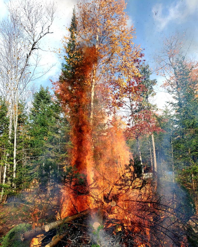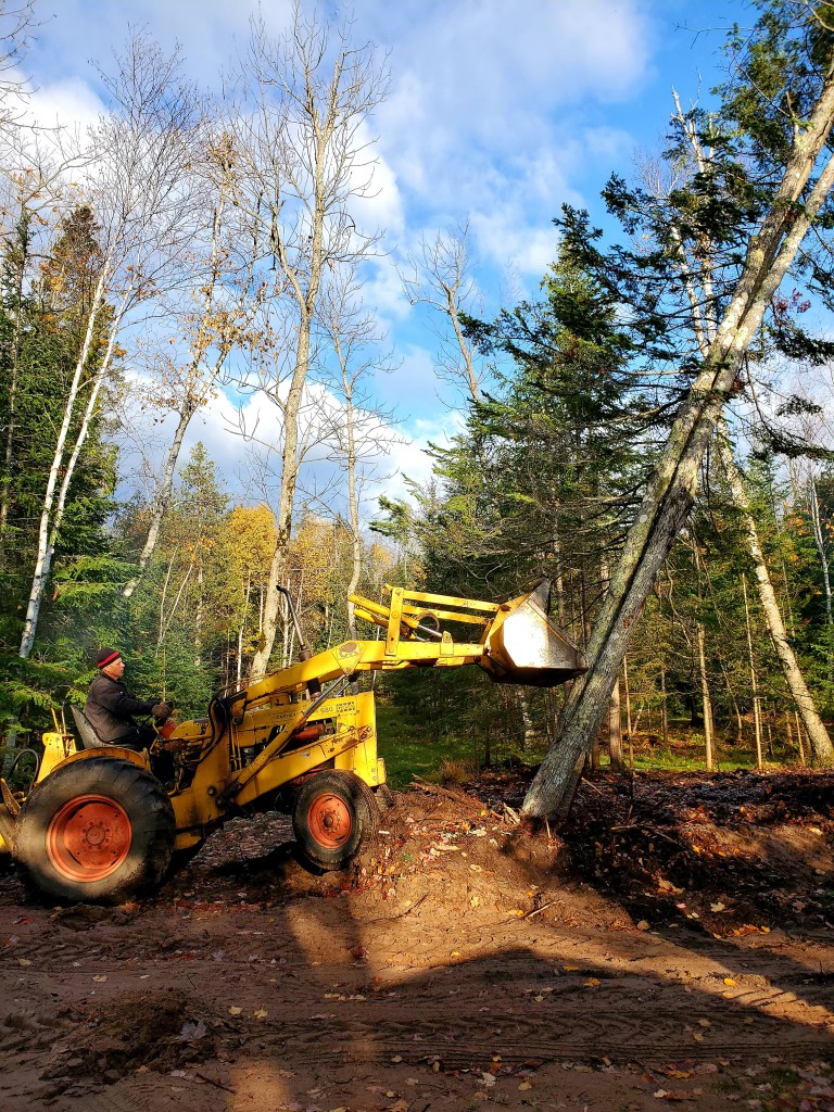 Ah, but there is often a backside in this path towards dreams and bliss. Not a dark side, or a bad side. Just a backside. I’m bumping into it as we chop, drag, burn and scrape to create a big open space at Camp Many Moons — a space big enough for a cabin.