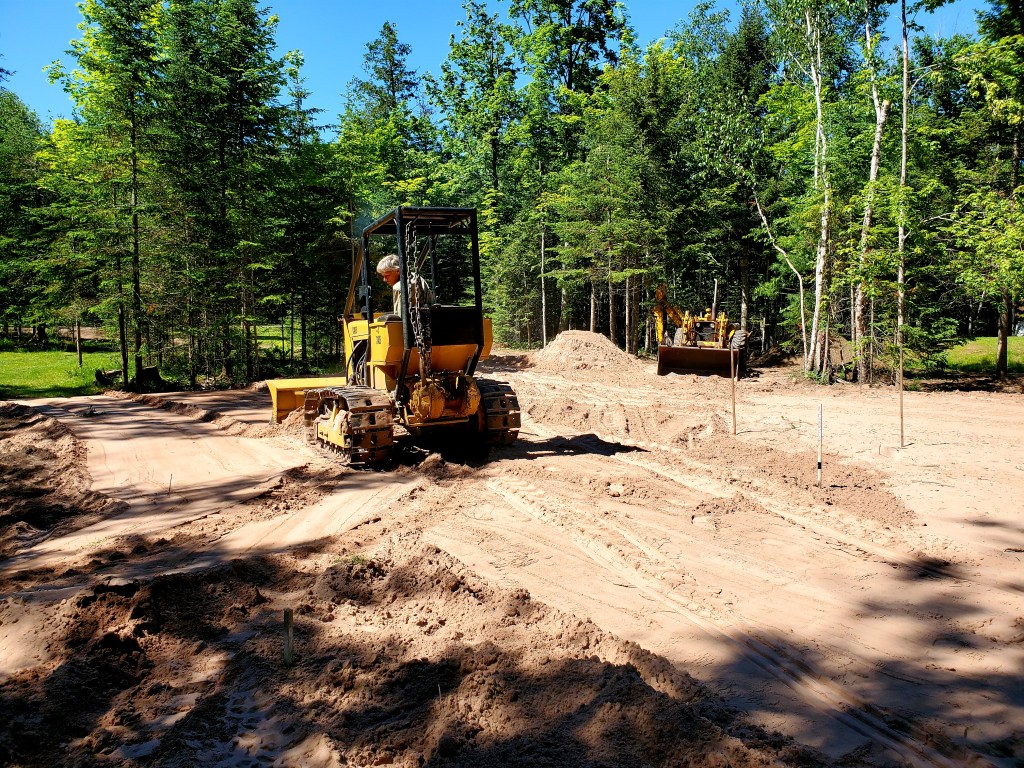 Sand is a remarkable medium, both adaptable and resilient. It shifts as nature or humans require, never losing its elemental nature even as its appearances changes. On the waterfront, it gives us wide sandy beaches one day and narrow rock-strewn beaches the next. On the building site, it’s giving us the foundation for a cabin — 30 dump truck loads, so far!