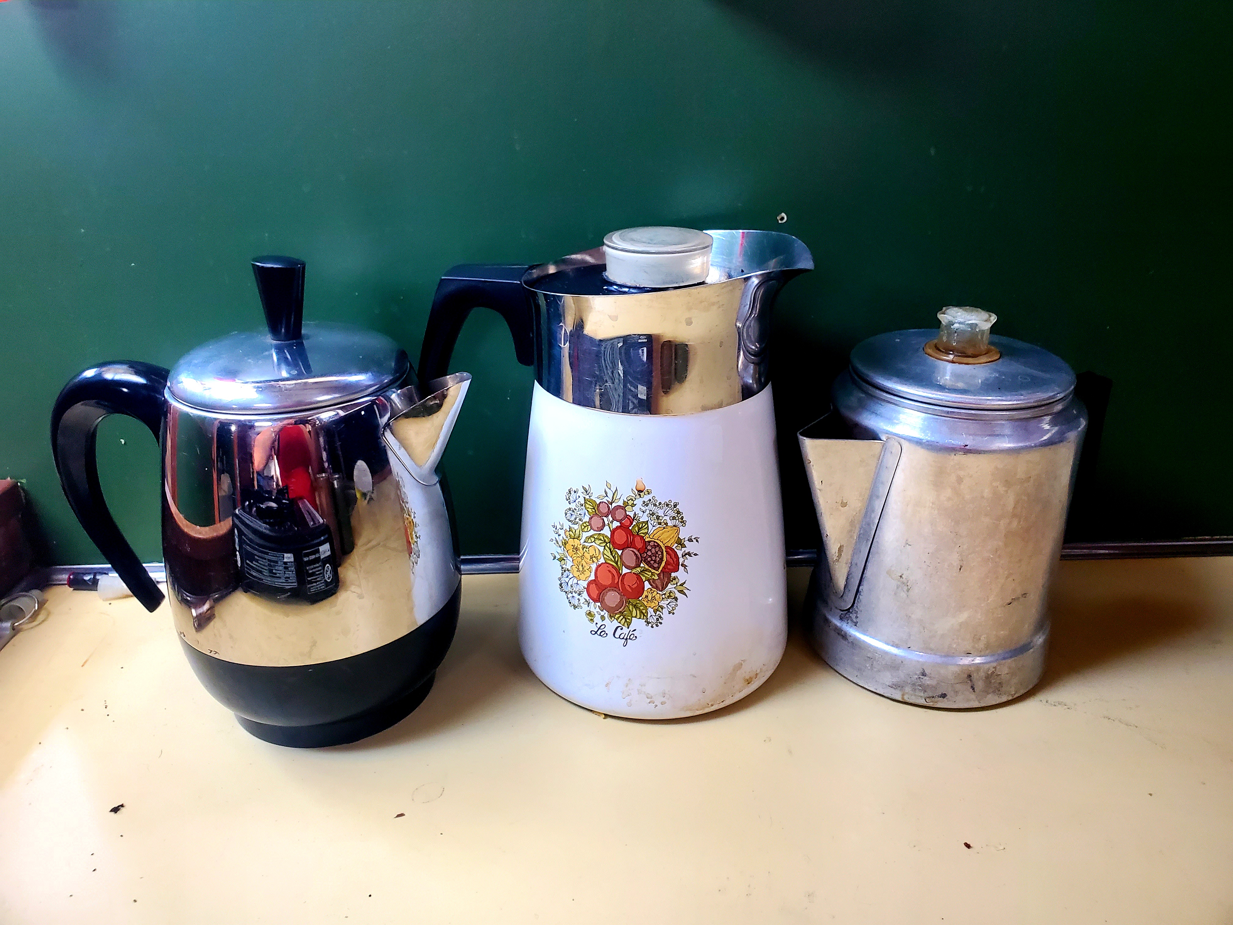 I was not frugal about coffee. Jeff likes his coffee weak. I like mine strong. So we have three percolators on board; two that can be used on a butane-fueled burner or the galley stove and one that can be plugged in. I’m taking other chances on this trip. I’ll take no chances with my coffee.