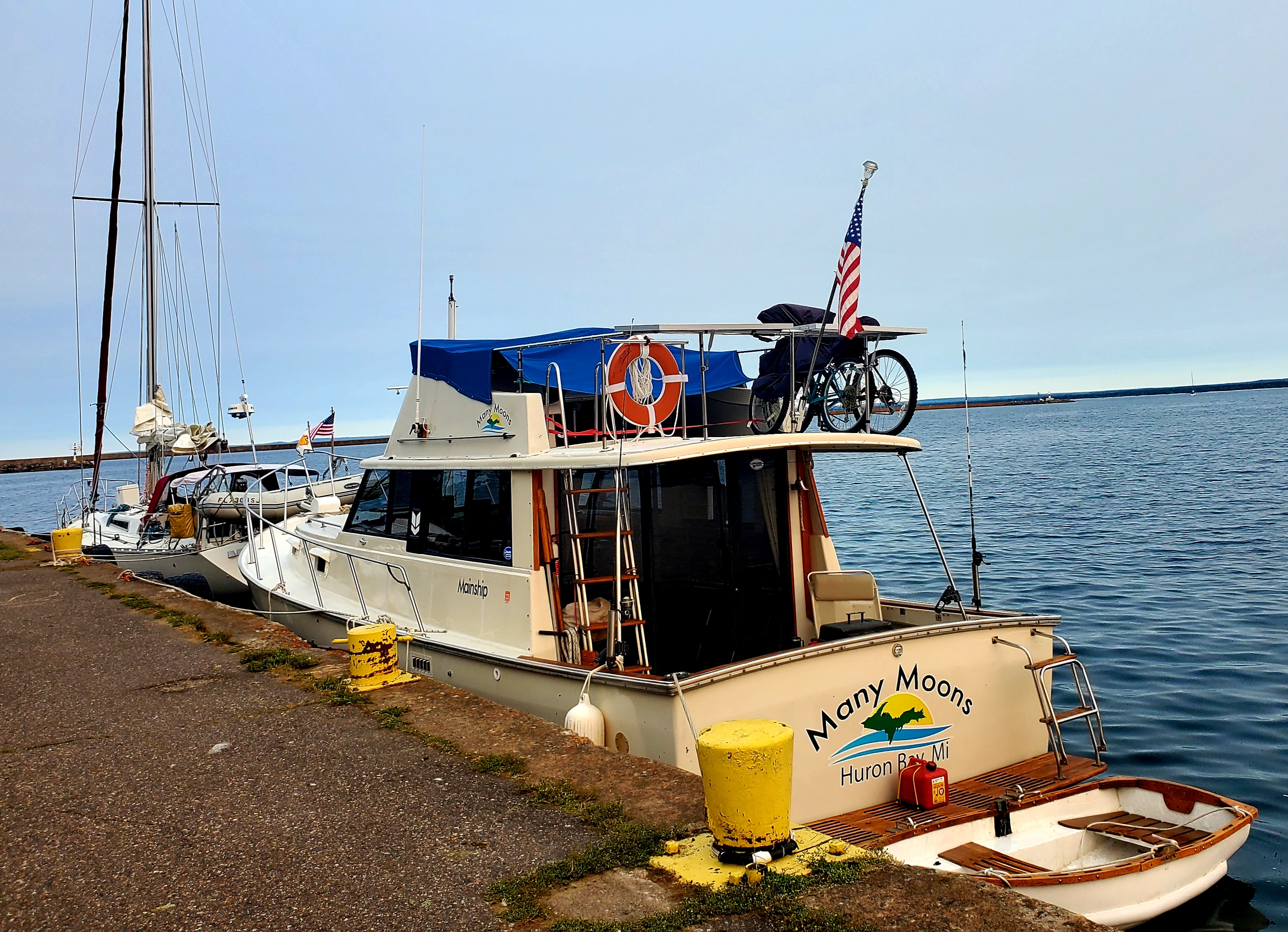 The adventure began July 30, 2021 with our sunrise (6 a.m.) departure from Pequaming on Keweenaw Bay in the western Upper Peninsula, bound for Marquette. Our companion boat, which I insisted on as a condition of navigating the unpredictable and often dangerous Lake Superior, is a gorgeous 42-foot sailboat which is making its way from Pequaming to Florida. We will be together for a week or so, after which our tracks diverge.