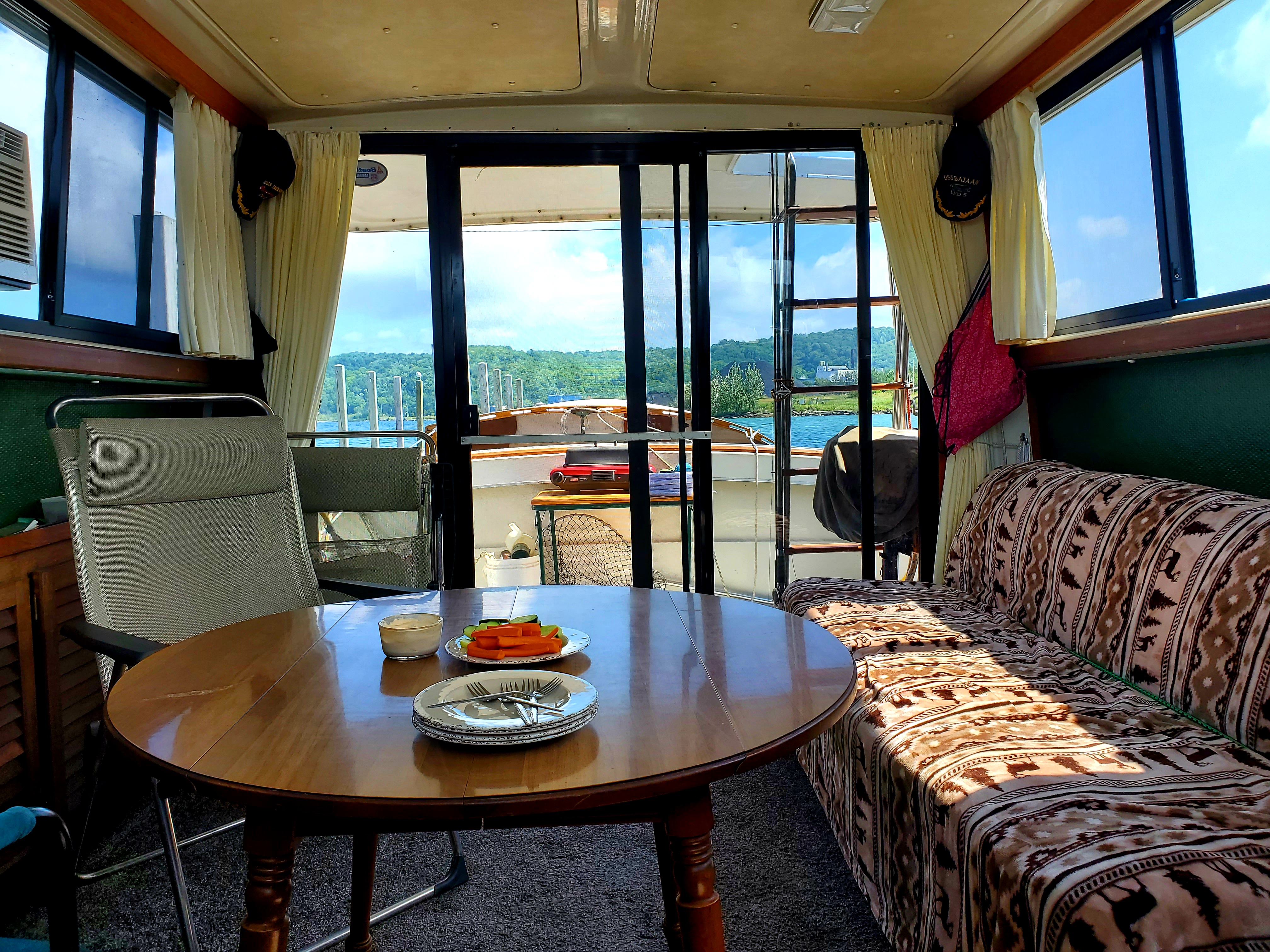 I tuck into the V-berth (sleeping area in the bow of the boat) with Boo purring at my side. It’s a comfort to have her on board, and she’s adjusted very quickly. I resolve to be as adaptable as she is, and fall asleep at 1 a.m. grateful to find my own wake-up time tomorrow.