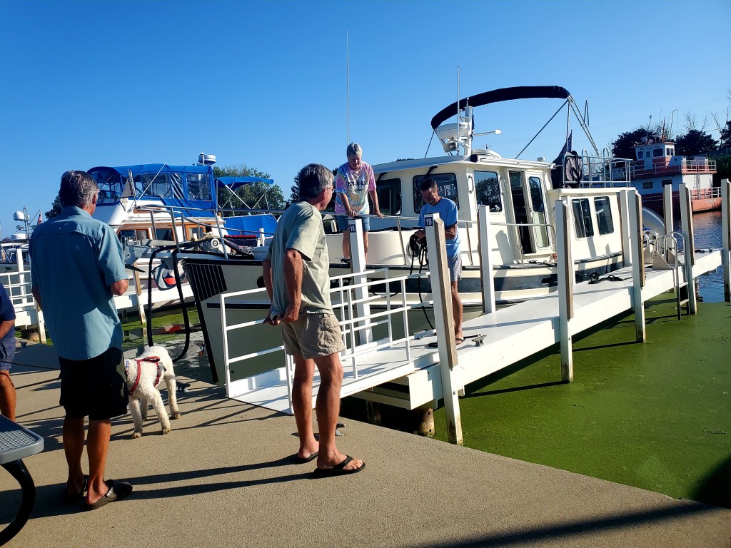 The last hour was rough, though, as swells intersected with wind-blown waves and with waves bouncing off the approaching land. A confused sea begets confused stomachs. We both took dramamine, for only the 2nd time on the trip. We used music to distract ourselves. When the signal wasn’t strong enough for SiriusXM, I played my harmonica. Jeff got pretty sick just before arrival, which made me nervous as I haven’t yet docked the boat in a strange marina and hope to never be in that position. But we worked together to get his system righted again, just in time.