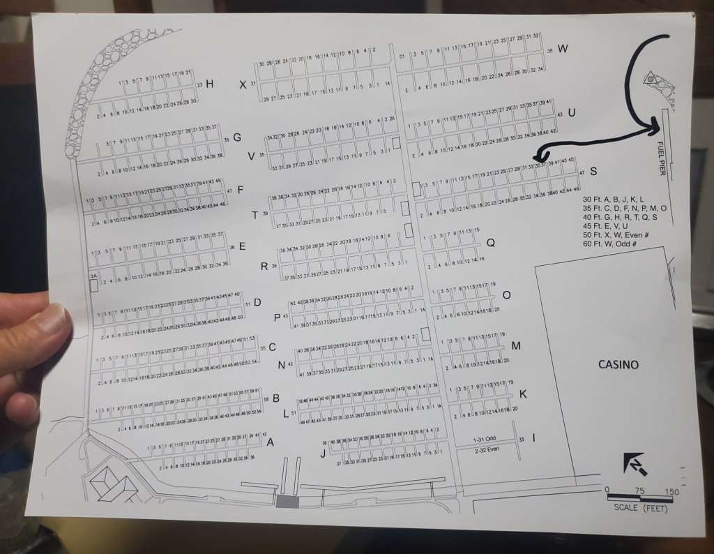 The 20th port of our boat journey is a bit of a shocker. It’s a long walk, maybe a half-mile, to the marina office. Music floats over from nearby boats, often loudly. We need a key to enter and exit the docks. And, this marina has 900 slips!
