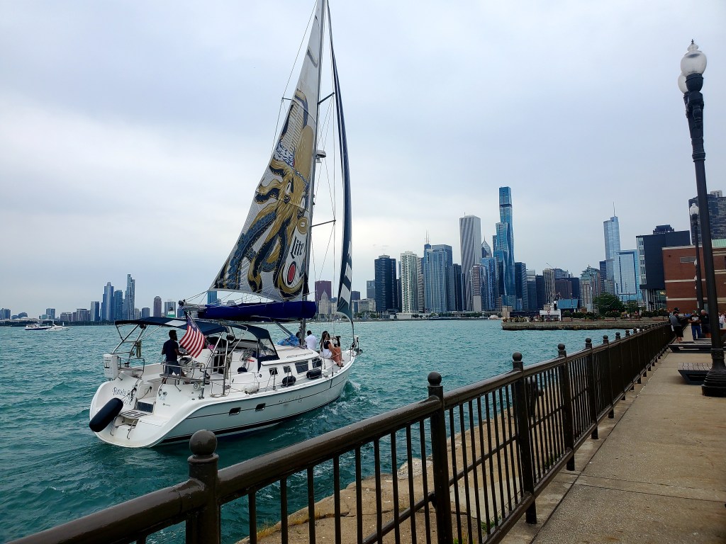 The rest of the day went better. The train deposited us just where we wanted to be, in the center of walk-able Chicago. (I’ve had a lot of practice in Washington D.C. navigating train schedules and large stations, but I did feel a little rusty since I’ve been retired for years.) The city wasn’t as busy as we expected, and easy to explore. We got a good look at the Chicago River, which we will be navigating soon, and other major sites. The day ended with “docktails” with our fellow Loopers. (That’s the term Loopers use for cocktails on the dock — or, more generally, social hour.)