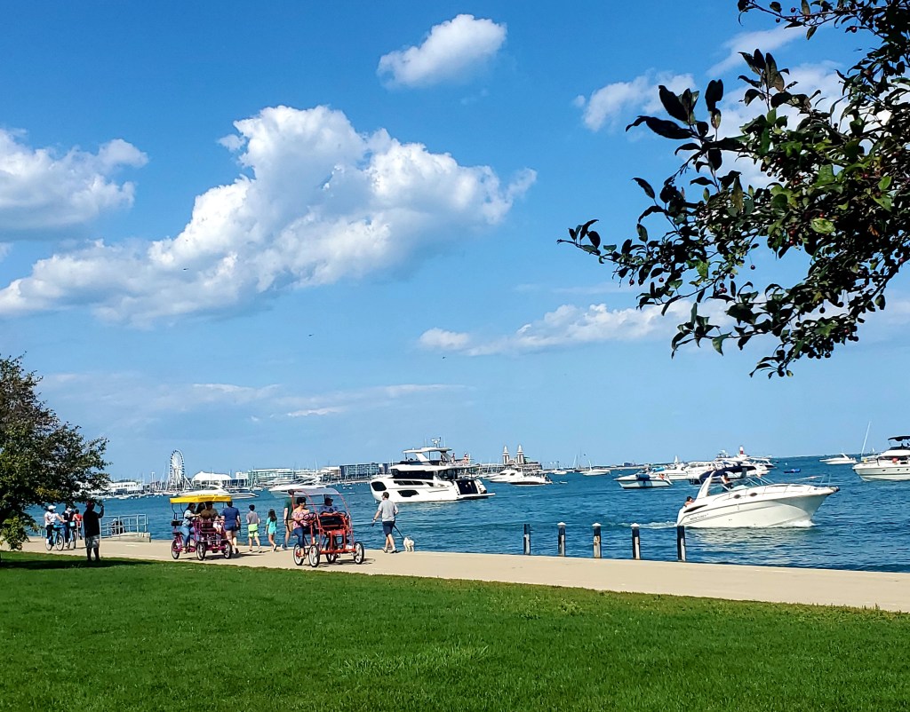 It is beautiful!!–but I don’t mind limiting it to one night. I originally reserved for two, but we changed our minds because of high winds coming…nearly 30 knots, which is concerning. This is the Sunday night of Labor Day weekend, and the city noise is startling, even for this Washington DC resident. It’s been fun to be part of the hustle-and-bustle for a few days, but I’ll be glad for more quiet venues! As I write this at 11 p.m., I can hear the concert under way at nearby Soldier’s Field.