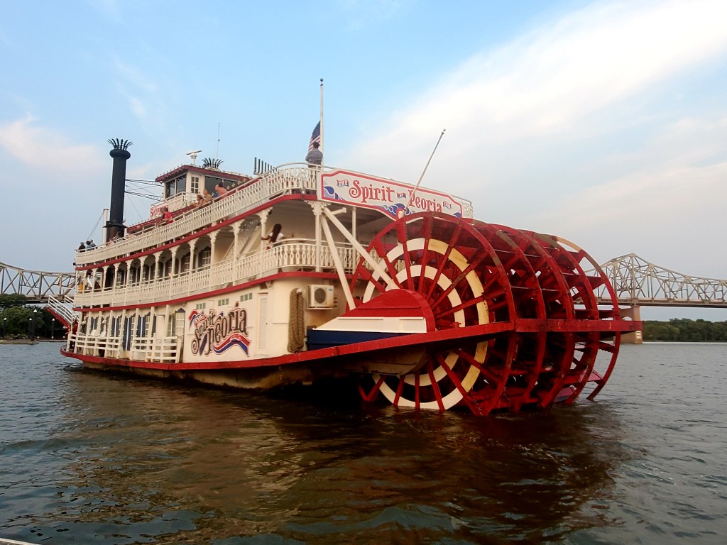 Ah, Peoria … Main Street America! It’s 2200 (10 p.m.) on Saturday night, still about 80 degrees. I’m writing this from the free city dock alongside the waterfront park, where an outdoor band is playing. It’s a pretty bad band. This amuses rather than irritates me. On any typical warm Saturday night in any typical American city, you might hear a good band or a bad one. Either way, tomorrow comes.