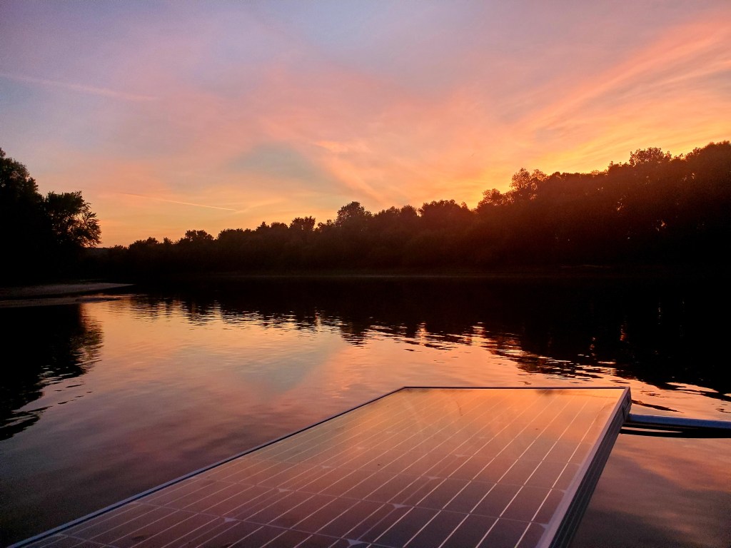Post-sunset at Buckhorn Island. That’s the solar panels on Many Moon‘s fly bridge stern, in foreground.