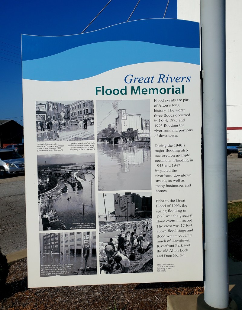 I did two loads of laundry! That’s hardly “news,” but a part of boat life that has to be planned. (We keep a lot of quarters handy for the purpose.) Jeff took his bike into town to find the bike shop and hardware store — his first time using Google Maps by bike — while I took a slow jog on the waterfront, stopping to read signs that explain the history of flooding here.