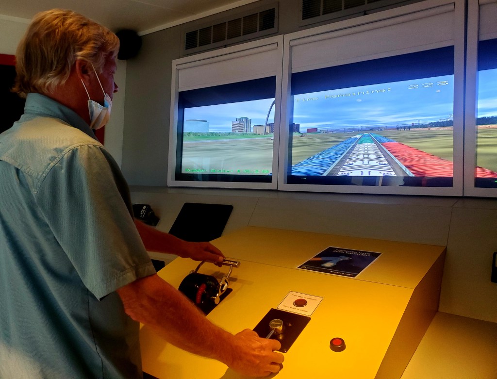 Jeff “took a spin” on the museum’s barge simulator. He crashed. 🙂 (I’m sure he would have succeeded on a 2nd try! We were warned that it’s more difficult that one would think.)