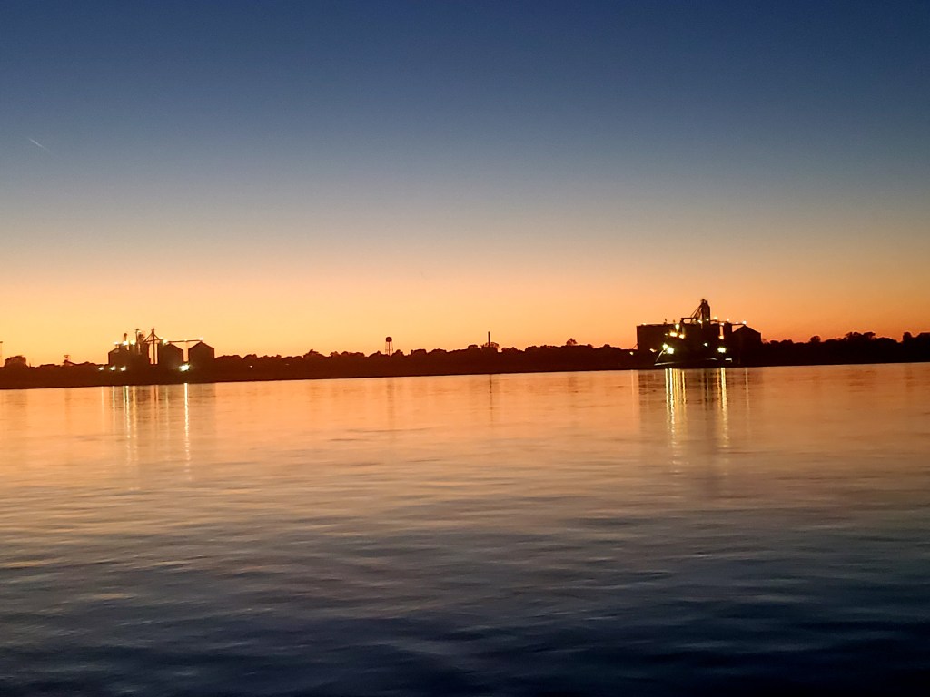 We’re anchored out just eight miles up the Ohio, right on the shoreline but well out of the river traffic. I feel relaxed here. Our anchor line is stretched out with the current rather than fighting against it. I want to be more like that, I think…but I’ve always gone against the current in some ways, in spite of my military past. I seem to challenge the accepted norms — not loudly, but persistently. It’s not a decision. It’s just the way I’m built. It’s exhausting at times. But some norms should be challenged, no? It’s called progress.