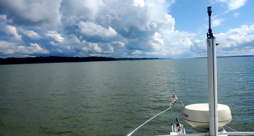 The clouds broke enough during my dinghy outing to get this shot, looking out from Sugar Bay into Kentucky Lake.