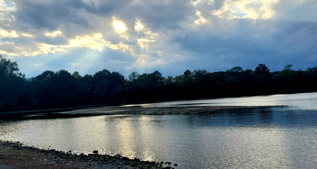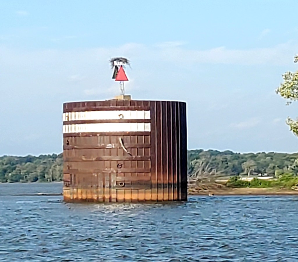 You’ve heard of the “bridge-to-nowhere?” Here it is! 😉 Actually, ths bridge did once cross the Tennessee River before it was dammed to create Kentucky Lake. The remains of the Danville Grain Elevator emerge from the water nearby. We see signs like this, of “life before the dam,” all along the river.Federal Mooring Cells like give barges a safe place to secure if needed. In case of storm, I guess? We see the same structures near locks, but this is in the middle of the river. It’s also higher than any we’ve seen before.Many Moons is 2nd from top, at Pebble Isle Marina, about a mile inland from the Tennessee River.