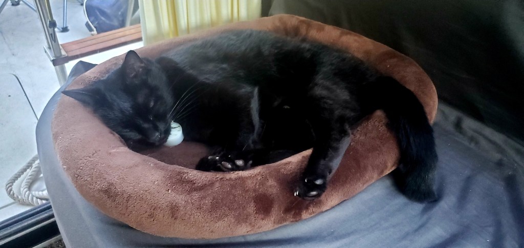 PS: Our thanks to Peter, Cheryl and Jeff on Varlabania for hosting us a 2nd time. (We went over by dinghy.) Our boat is too small to host more than two on the stern. but we hope to make it up to them some way — especially since they’re from Sturgeon Bay, Wisc. 🙂