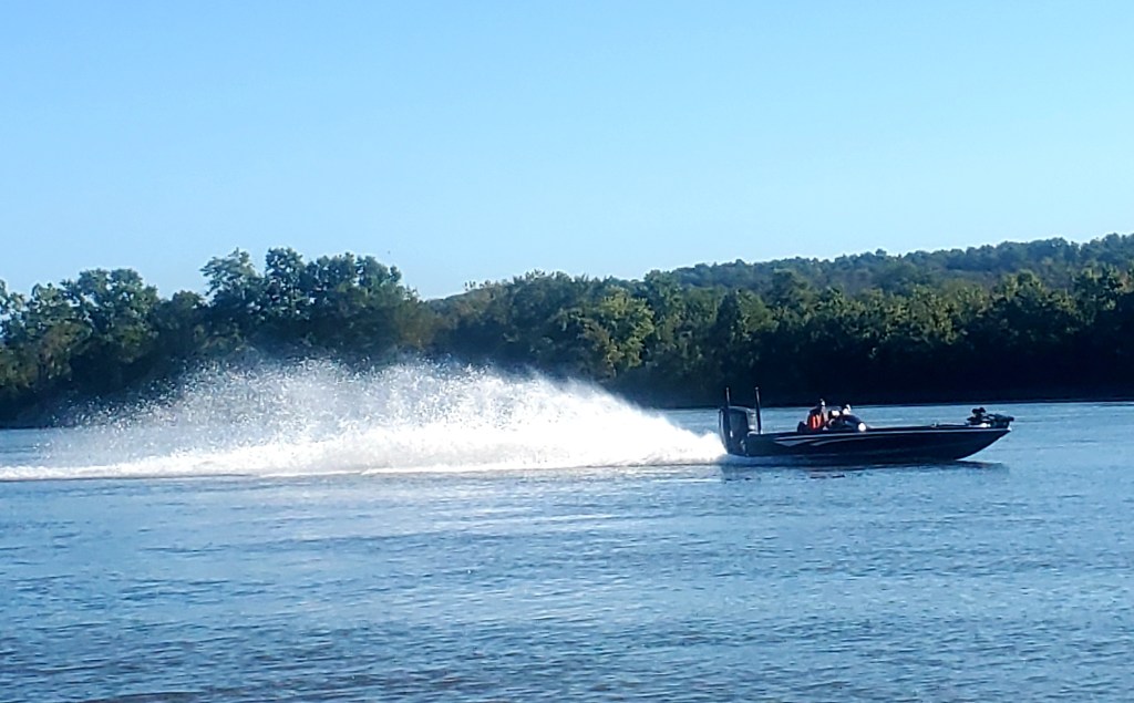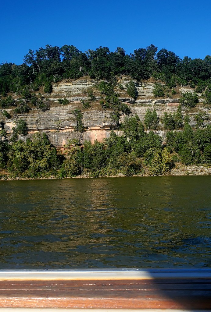 We are putting some miles on now — nearly 60 miles yesterday (from Birdsong Creek to Clifton) and nearly 40 today (from Clifton to Snake Creek). In a boat that goes 8 mph comfortably on flat water, pushing against a 2-3 mph current, that counts as distance. That 60-mile day took us 8.5 hours.