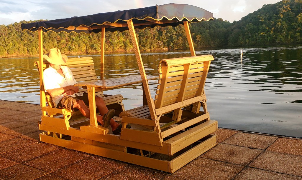 Grand Harbor offers these fun gliders along the pier. Jeff looks like he’s sleeping, but…not! .;)