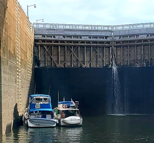 Hugging close to Ginger Gail inside Pickwick Lock.