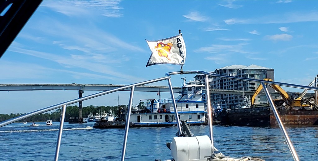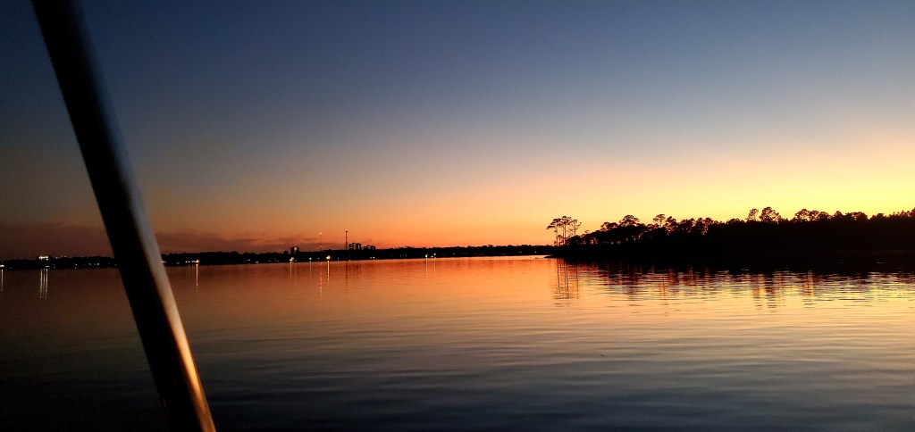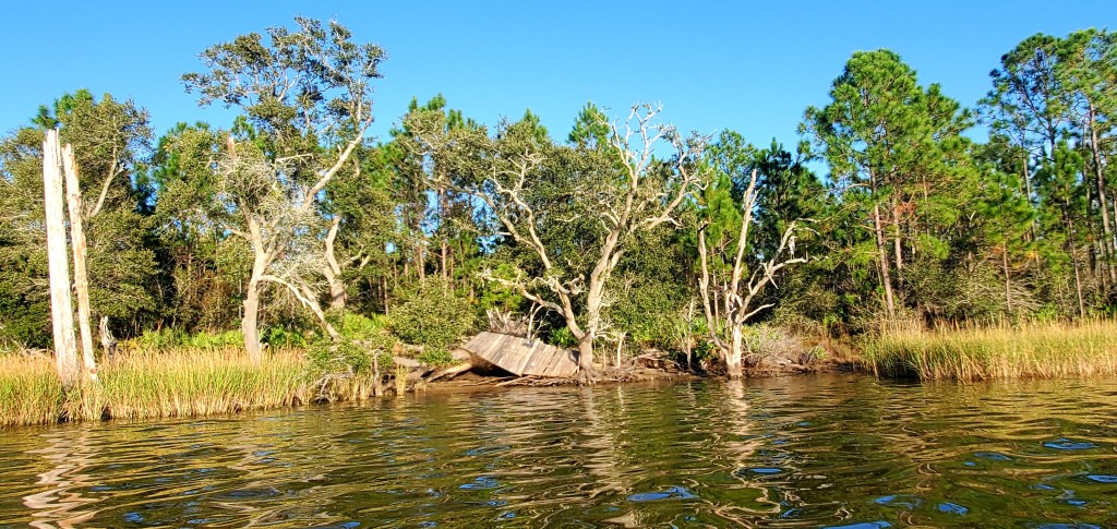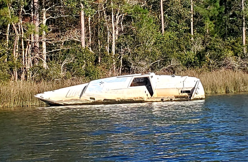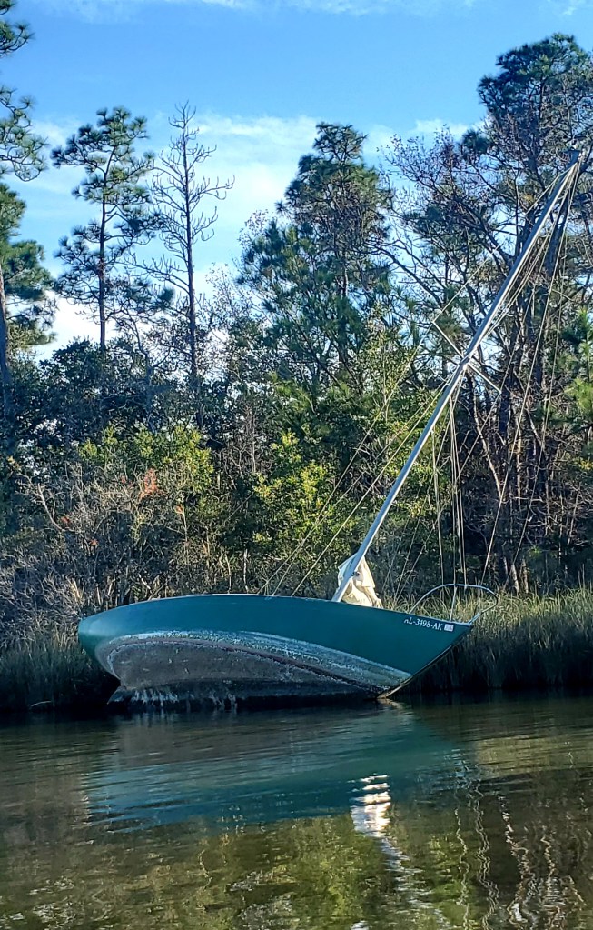 We’ve seen dolphins, a ‘gator, and sunken sailboats. Also bayous.