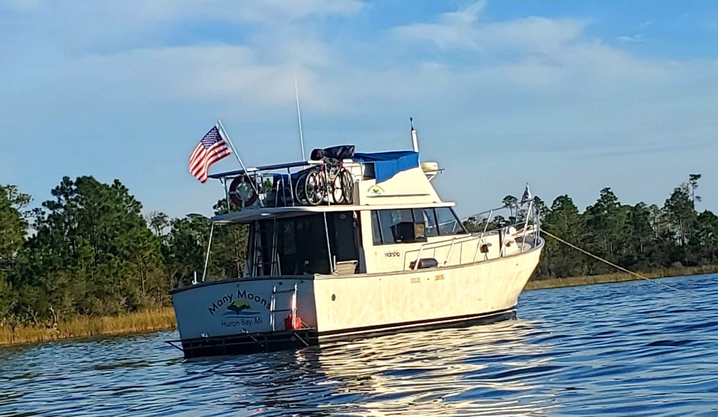 Many Moons at anchor in Ingram Bayou.