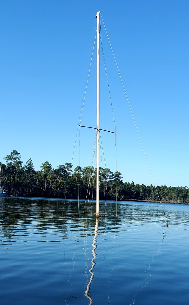 Nothing but the mast showing from this sunken sailboat! How does it stay upright?!