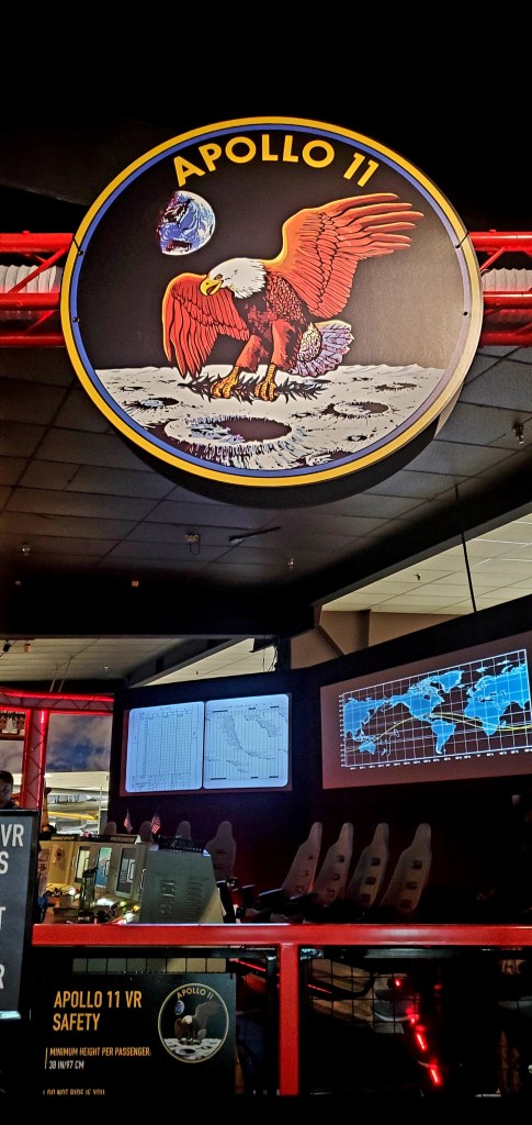 We went back a 2nd day to do the virtual reality trip on Apollo 11. The “ride” has just reopened after more than a year. I loved seeing our beautiful blue earth from space. (Neil Armstrong was a Navy pilot before he was an astronaut, as were many other astronauts.)