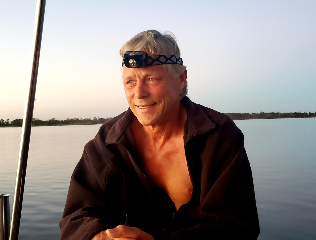 We put our headlamps on early now, because nightfall comes so quickly. One minute, it’s daylight and the next, it’s dark. Or so it seems. (As a Michigander in Florida, Jeff is still trying to wear minimal clothing — but he does don a jacket in the evening!)
