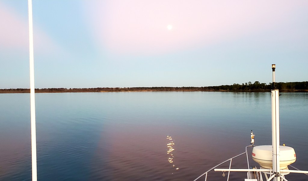 Tonight, a lesson in Native American names — which is appropriate, since this is Native American Heritage Month. We are anchored in Chocktawhatchee Bay, named for the Chocktaw Indian Tribe, on Florida’s Emerald Coast. (“Hatchee” means creek or river. A river does run out of this 30-mile-long bay.)