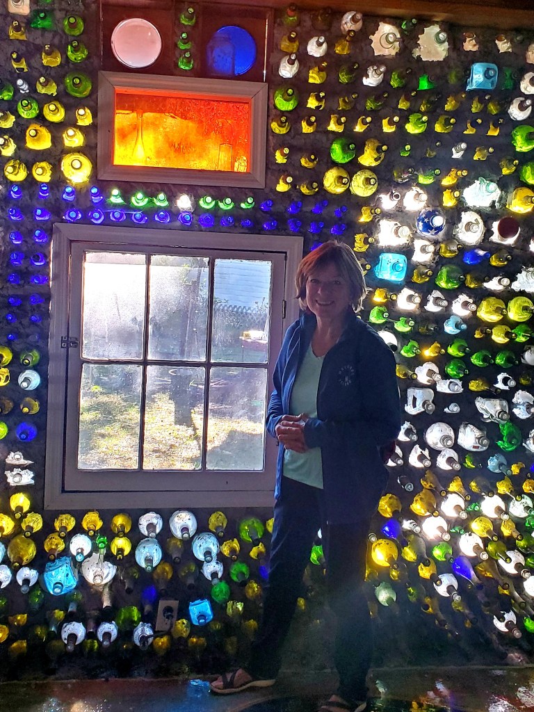 The Bottle House is one of those quirky “must-see” destinations. It’s free (donations accepted), memorable, and sits in the creator’s yard. Here, Leon and Frances stand next to the lighthouse made of bottles. Leon is a former art professor.