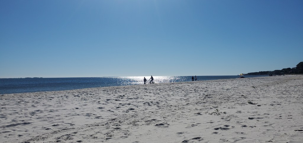 We biked to Carrabelle Beach, a few miles from our marina, to admire the white sand and wide vistas.