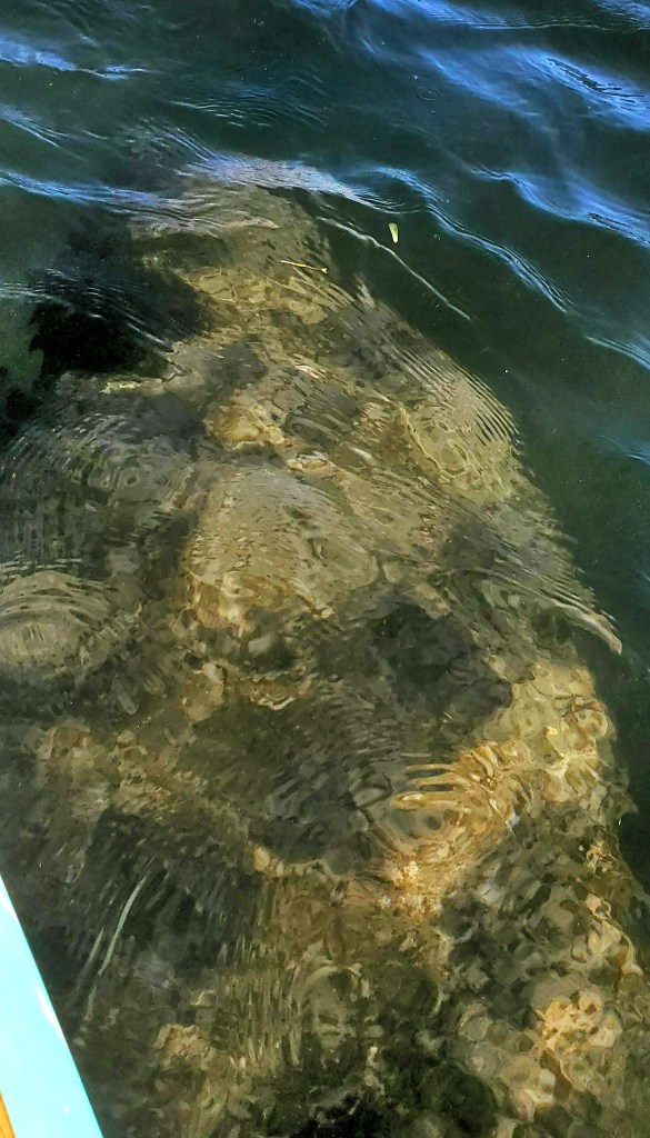 Yesterday, I followed the boat by car from Carrabelle to Crystal River. As planned, I brought medical and cooking supplies to the boat…and decided to spend the night on board, near Pete’s Pier. How could I not? The boat was anchored in the perfect place for water-level visits with the “sea cows!” That’s been on my must-do list for years. (I was hoping to scuba dive with them but that is not allowed anymore, nor should it be.) I was delivered back to land before sunrise and once again watched as the boat pulled away without me. Once again, it felt odd. I have a few days to play with, so sat in the parking lot a long time trying to decide whether to drive south (to its next port) or north (toward my house near Washington D.C.). I drove north.