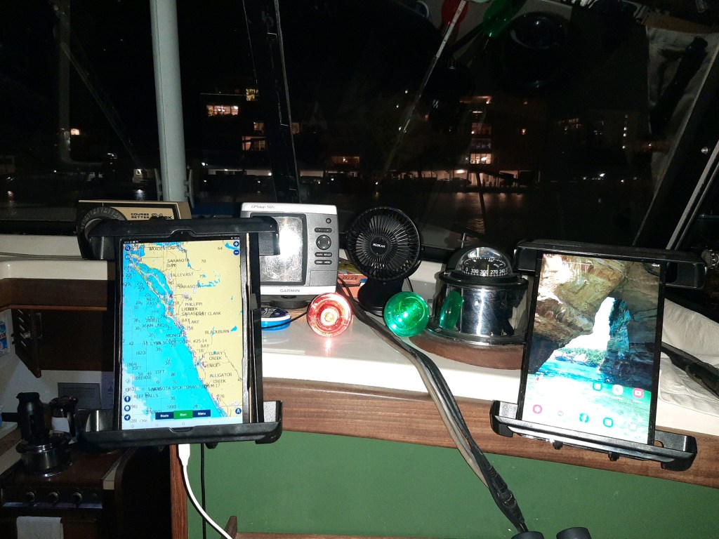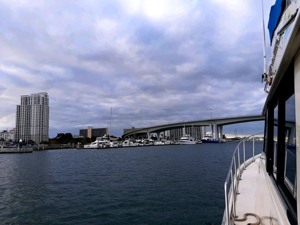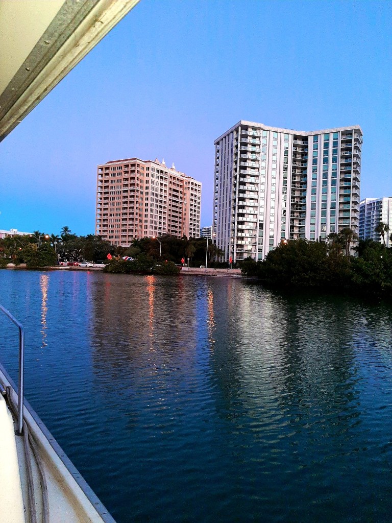 Since we left them three days ago, Jeff and Tom have practically sprinted — if a trawler can “sprint” – farther south along Florida’s west coast. They have re-entered the Intracoastal Waterway (ICW) and continue to anchor out, testing how long the water tank and grocery supplies will hold out. Here are a few photos Jeff took of the 60-mile trip from Tarpon Springs to Sarasota. (Meanwhile, as I adjust to “the dirt,” I’ve put about 1,200 miles on my car in about three days. On Many Moons, we took at least three months to make that distance. Three days vs. three months. Put your head around that! I will post my own experiences from the road under the “Reflections” menu item on this blog. I will continue to post updates of Many Moons‘ journey under “The Boat” menu item.)