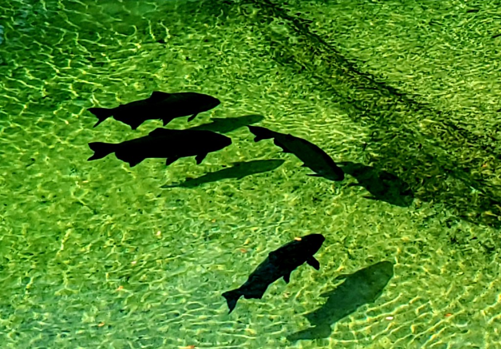 At the end of our cruise, we anchored at Blue Spring Park to meet Buck and Denise. The manatees for which the park is famous had left but we did see lots of black fish making shadows in the afternoon sunlight.