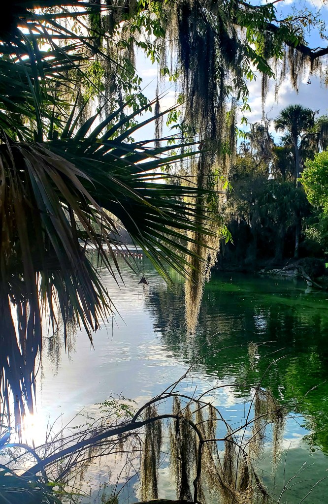 After breakfast, June and I explored Hontoon Island by bike and stopped at the scenic waterfront to cool off, hydrate, and drink in the views reminiscent of Jurassic Park. And it was hot. That’s sun protection she’s wearing, not warm clothing.