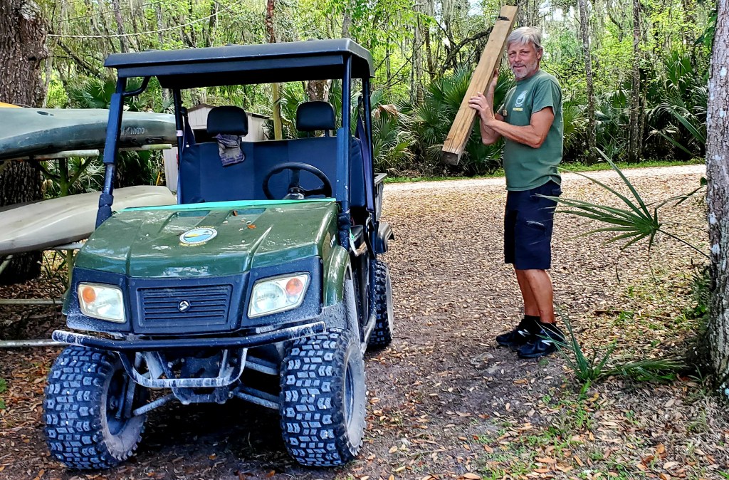 Now that I’m back on The Loop, I find myself wondering where the other Loopers are now. Well, here! Some of them, anyway. Three other Looping boats joined us this week at Hontoon Island State Park on the St. Johns River in Central Florida, and three more passed by recently or arrived as we prepared to leave. This is a bit surprising because this park is more than 100 miles off The Loop route. But it’s also not surprising because this is a well-known “destination river” for those passing time in Florida before heading north. And most Loopers are spending the winter in Florida, by design — some of them three months or more. Most of our friends are south of us, but I’m heartened to see that a few are slightly north of us as we prepare to head that way. We are cleaning and organizing the boat for travel after my 6 days here, and Jeff’s 6 weeks. As he ends his stint here as park volunteer and then marina host, there’s the usual mixed feelings … sadness to leave new friends behind and eagerness to move forward. (Sort of like military duty, when you’re always saying good-bye to someone as duty stations change.) I’ll publish one more post featuring the awesome flora and fauna of Hontoon and then will post from under way again as we head north. Forward, Many Moons! About 3,400 miles under your hull, and about 3,000 more to go. Maybe. 😉 Photos and captions below. {Note, for those tracking our daily movements via this blog: As I write this, we have left Hontoon Island and are anchored in Silver Glen Spring on our way northward. And, for anyone who has experienced technical challenges–which is all of us!–I’m amazed I got this post done, at anchor, after my laptop lost its charge and then my clumsy tablet-with-remote-keyboard option raised a ruckus and then we couldn’t find batteries for the keyboard. It feels like another “shakedown cruise.” 😉 But I’m grateful my mobile hotspot works here, as I remember many signal-less days on the inland river system. Why do I bother? It anchors my memories. And I know that many of you look forward to the next post. Thank you! PS: Boo-the-cat is doing fine.}
