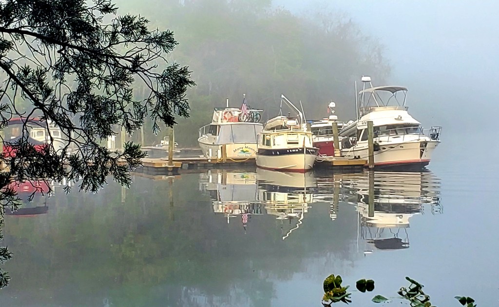 With your permission, the CAPT. AND i ,would like to swipe the first picture on this post. The composition in the picture is fantastic. The mist, partially obscuring the fauna in the background, the way the light colors of the vessels reflect on the still waters. Absolutely Beautiful….Bill, (the Capt.), Shirley (the Admiral), Landlocked with “The Reel Deal” in Kansas City,MO> until June.