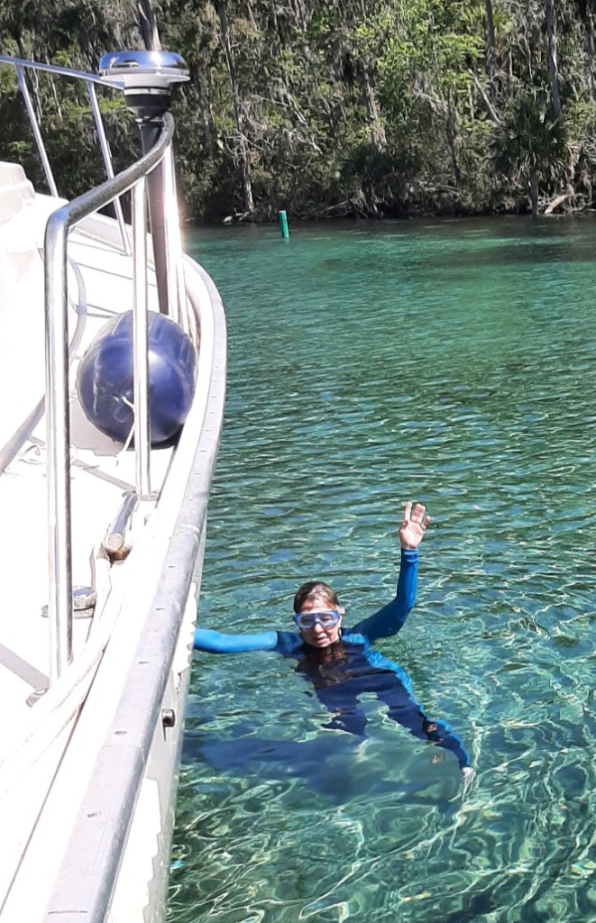 Many Moons is on the move again. Sort of. We’re headed back toward The Great Loop (the designated route is 100+ miles away), after a three-month pause for me and a six-week pause for Jeff…but went only 31 miles and stopped for three nights. Why? Crystal-clear waters at a consistent 72 degrees, that’s why. Pretty hard to find!