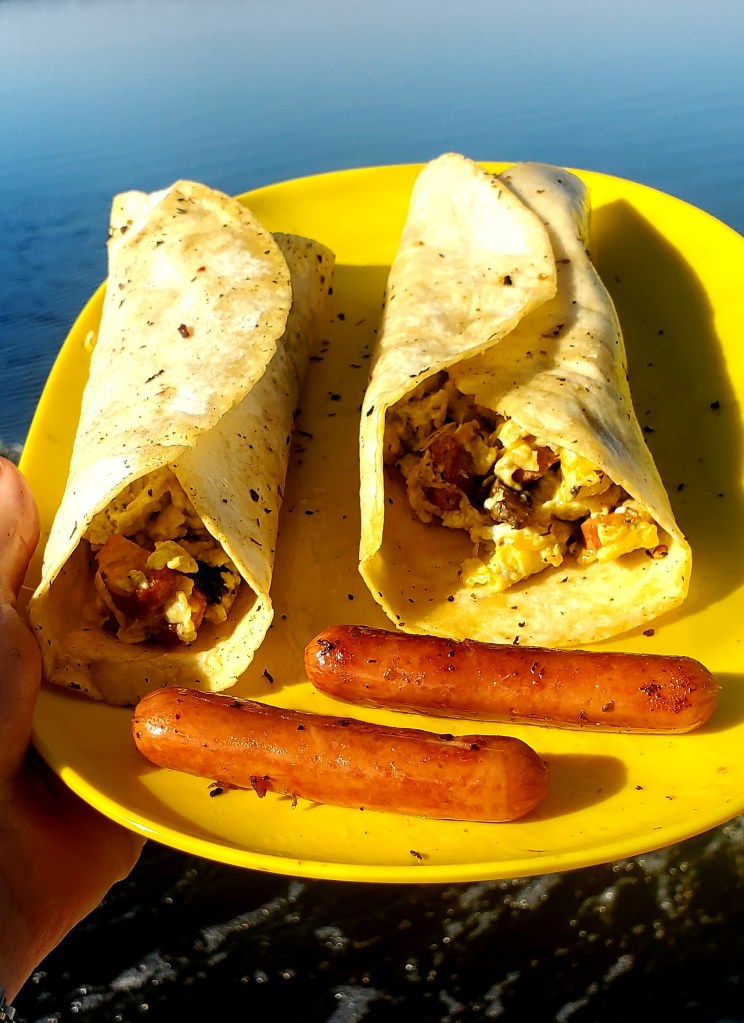 …wrapped in a grilled tortilla. An easy “hand-meal” for eating while under way.