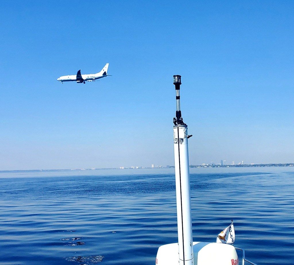 Naval Air Station Jacksonville was busy as we passed by. This Navy plane made its approach in front of us.
