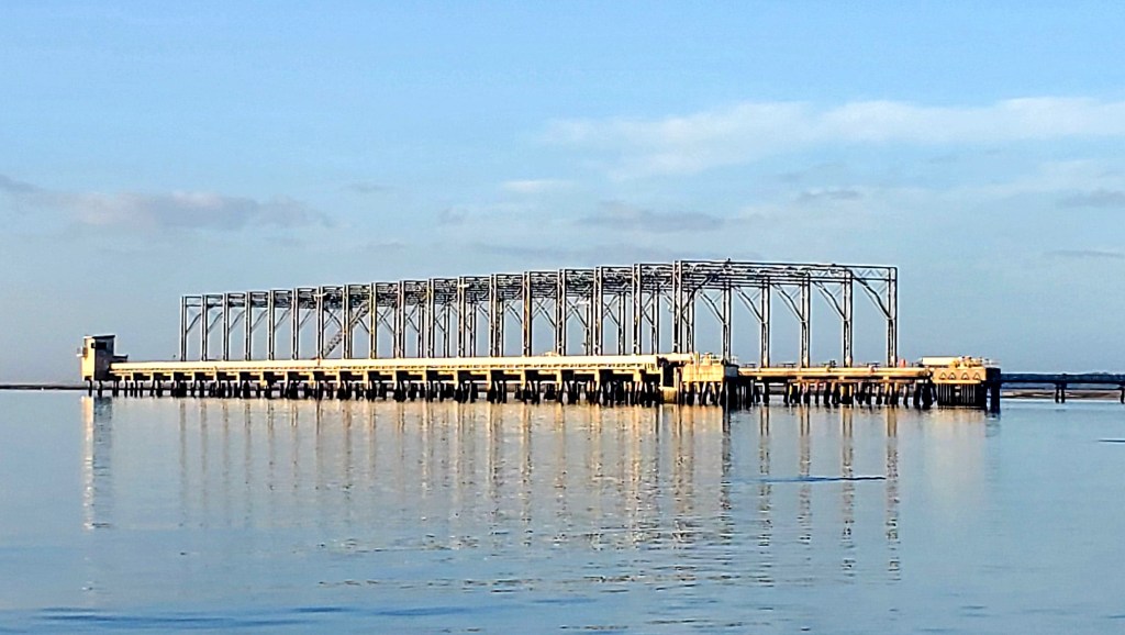 The structure you saw at the sun base is a degaussing station used to de-magitize ships or subs.. You will pass another near Portsmouth/Norfolk on your way north.
