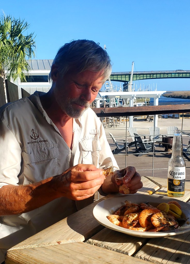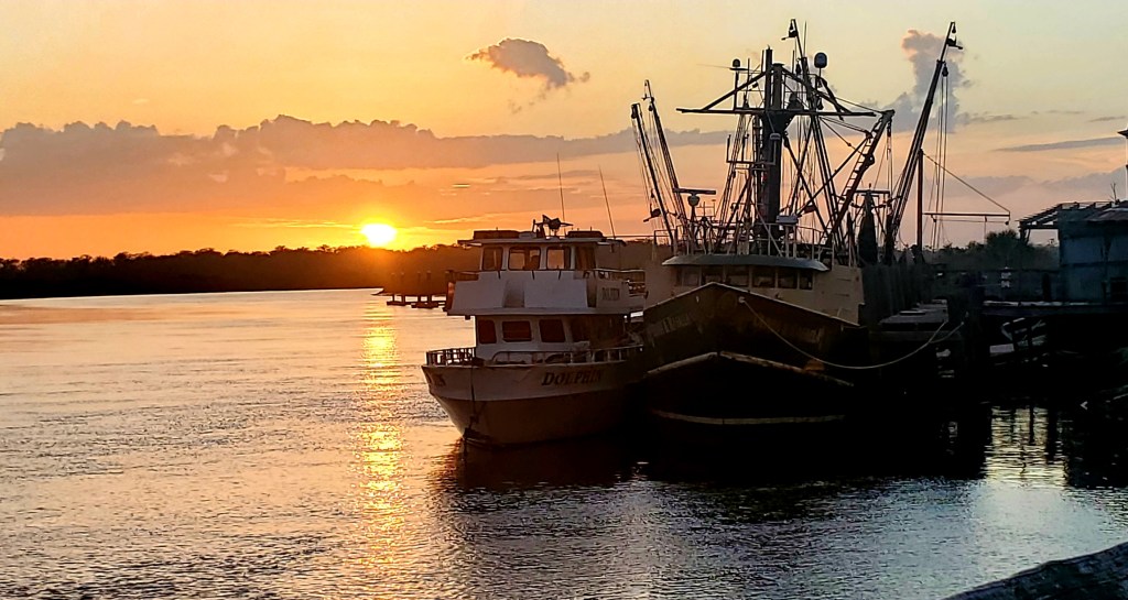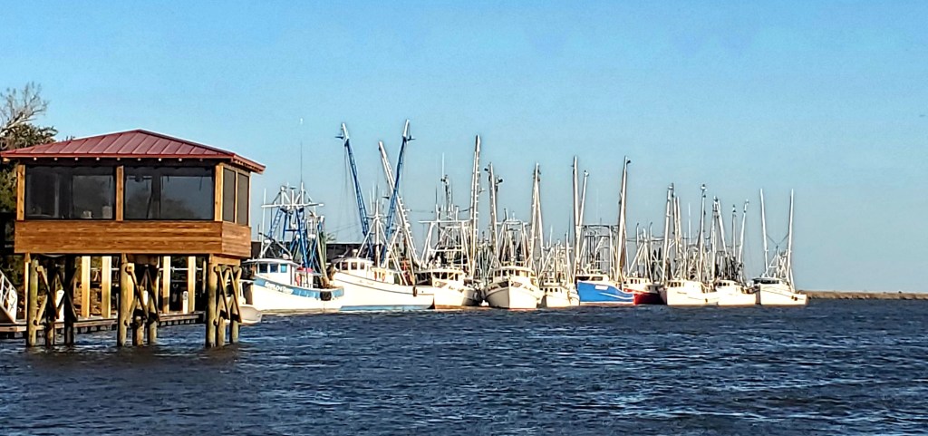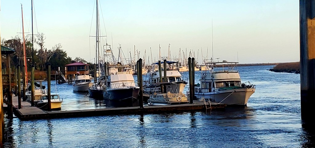 We came here on the recommendation of a cousin who has visited, and also because we were looking for that small-town, shrimp-town feel. We found it. We took an 8-mile detour from the route in order to come, but detours are a part of “Looping.” On toward Savannah from here, and possibly a stop-over there. But I also need to reconsider our schedule. I have a three-week trip to Egypt scheduled (and paid for) in April, and we were planning to make it to the Washington DC area by then. However, I just learned that the funeral for a much-beloved aunt will occur during that planned trip. (She lived in the far-north, and funerals/burials are often delayed until the ground thaws in the spring.) Can I cancel or reschedule the trip? Should I? If I cancel, we can take more time moving north and also make it to the funeral. I couldn’t reach the trip broker today so it remains unresolved for now. Priority-setting and off-the-boat decision-making doesn’t end when one is on The Great Loop…they just become more difficult, as many Loopers will tell you.