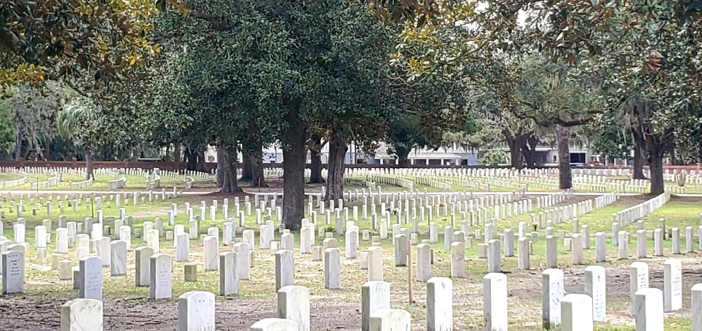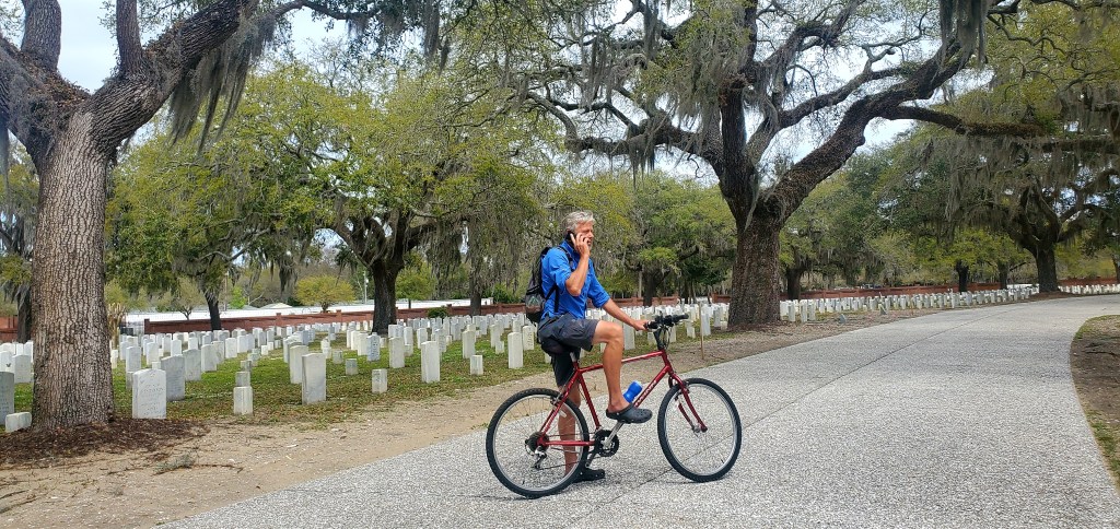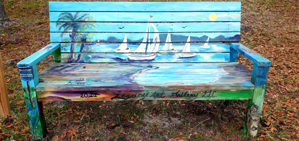 More on the Civil War and Beaufort: This town owns a unique chapter in Civil War history because Union forces occupied it during the first year of the war (thanks to the Navy), resulting in “The Great Skeedaddle” of townspeople and plantation owners. This “freed” (though not yet literally) at least 10,000 of their slaves, the first of the Civil War, long before the war ended. Imagine the upheaval! One can spare some sympathy for “ordinary townspeople” who got swept up in it because of where they lived and lost everything. (So did the 15 families who controlled most of the area and were some of the richest in America at the time. ) The early occupation also sped up The Reconstruction Era here, which is a key part of the town’s educational offerings. (A National Park Service brochure explains Reconstruction as the time when “the nation grappled with the question of how to integrate millions of newly-freed African Americans into its social, political, economic and labor systems.” It seems to me we are still grappling with it, a few generations later. I say “a few generations” because my own grandfather was alive during the Civil War.) And since the town was occupied so early in the war, it was spared the burning that occurred in other southern cities. That’s why so many beautiful pre-Civil War homes still exist here. A last note for history buffs: look up the story of Robert Smalls, considered Beaufort’s most famous person – or so one tour guide said. What a fascinating story, with twists and turns … the Civil War and its aftermath through one person’s life!