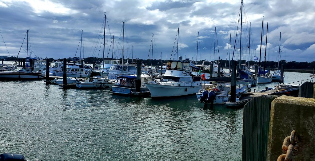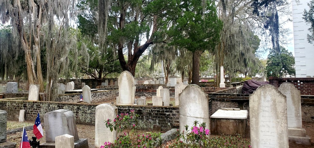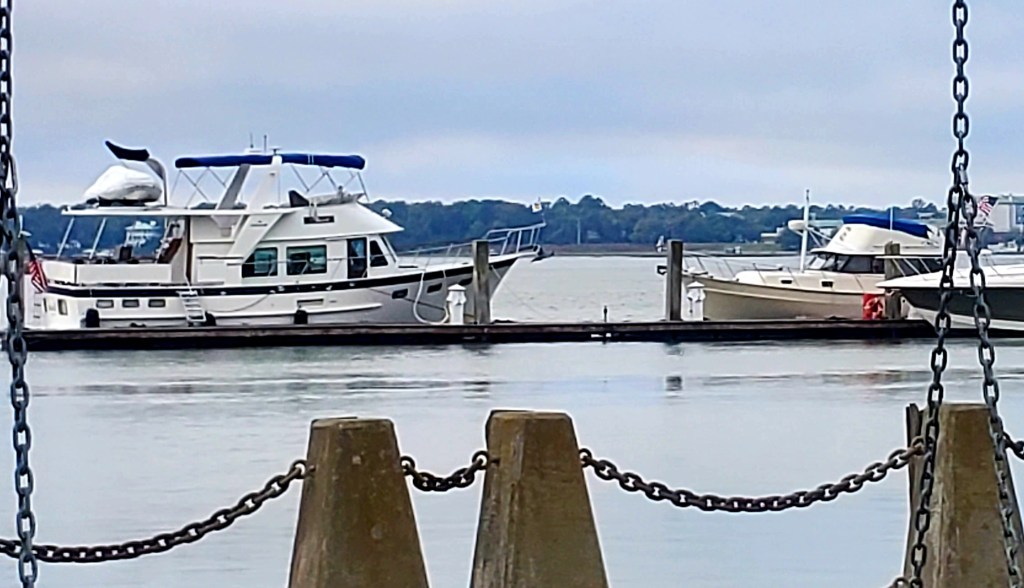 So much history. Such a walkable waterfront. And such fun socializing! Two nights wasn’t quite enough, but we continue moving northward through the Lowcountry in order to meet my April commitment in Washington D.C. I write this while sitting at a marshy anchorage in Church Creek, less than 20 miles from Charleston (where more history awaits), as dolphins cavort nearby and a full moon rises. It’s so peaceful, I don’t even mind the chill.