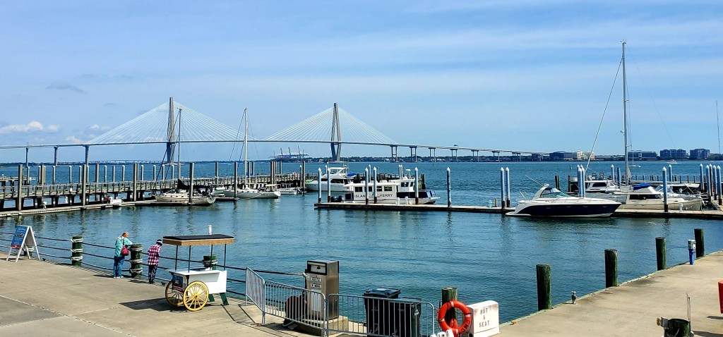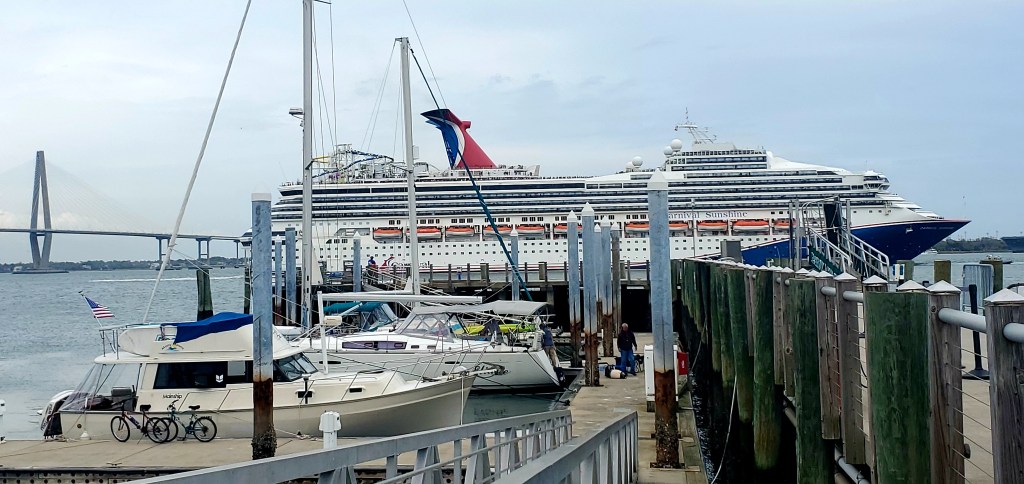 This is where the Civil War began. The first shot was fired here, in the first state to secede from the Union — i.e., withdraw from the U.S. But this rather infamous history doesn’t dampen its energy or beauty. (Or smells! ๐ ) It certainly doesn’t deter the tourists. There were plenty of those, because Spring Break has begun and a cruise ship was in town. But they are mostly courteous and patient. (I forget sometimes that we are tourists, too. We’re different only because we do our touring by boat and bike.)