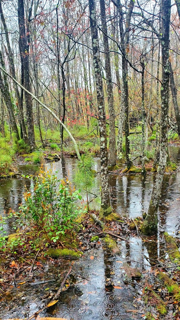 During the all-day rain at Carolina Beach State Park, I took a long walk to absorb the quieter hues of nature-when-wet. (It was a pretty warm day. Warm rain is rather comforting.)