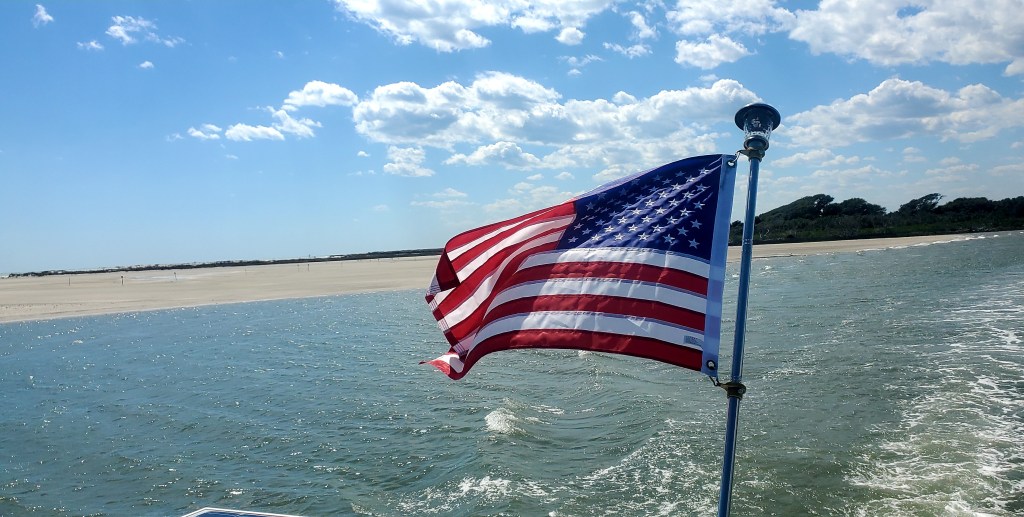 We passed Camp Lejeune Marine Corps Base for miles and miles, past signs warning of live-fire exercises. We considered a popular anchorage near here, but Jeff said he “prefers not to get woke up by “ka-boom!””