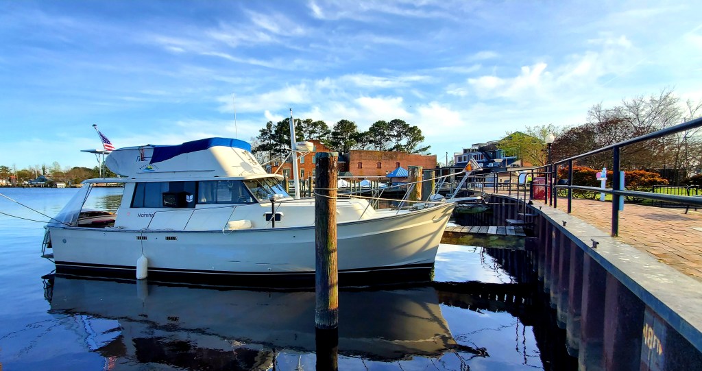 We spent our first night at the free docks of Mariner’s Wharf. They aren’t actually docks … more like tiny piers. We were so tired after our 85-mile trek and rough seas the day before, we didn’t even leave the boat until the next morning.