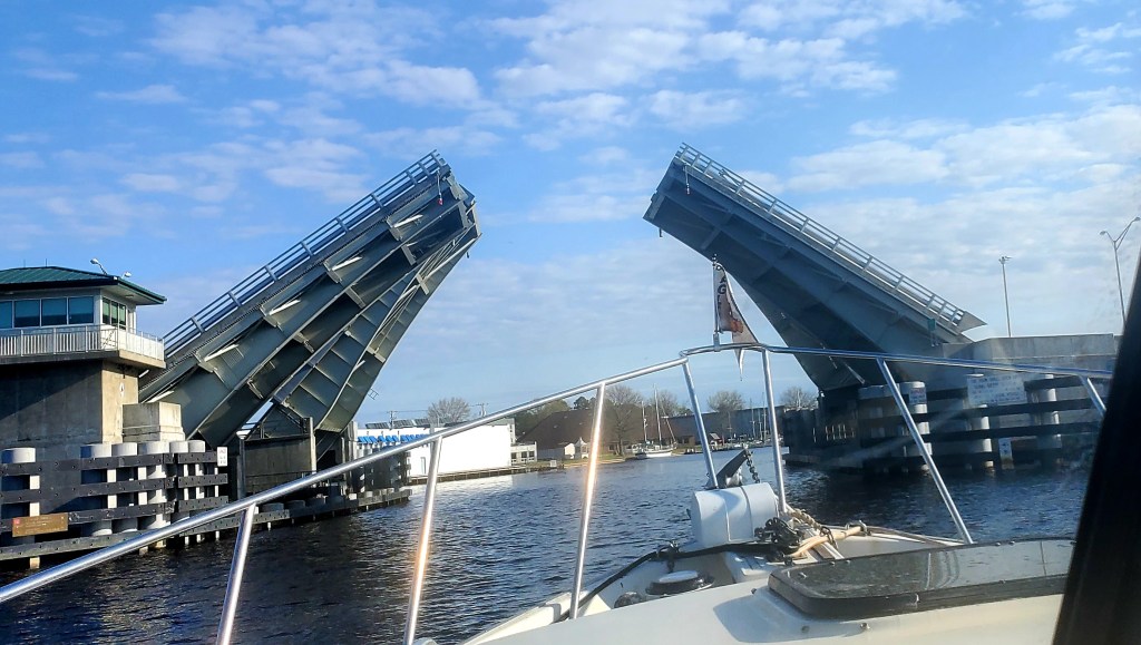 This is what I hoped for from The Great Loop — far from big marinas, mixing it up with the locals. Our home for two nights was this city of 19,000 on the shores of the Pasquotank River, just north of the Albemarle Sound and near the entrance to the Great Dismal Swamp. The city has spruced up its downtown and repurposed old buildings. We had a delicious breakfast in a local cafe, where I spotted a local who acted like the mayor. You know the type, wearing a casual suit jacket when nobody else did, glad-handing everyone. I asked the waitress. “Yep, we call him the honorary mayor!” she confirmed. “Types” are identifiable anywhere.😄 We encountered more local “color” in a brewery that has just opened on the waterfront. This city tries hard to be welcoming to visitors. So nice.