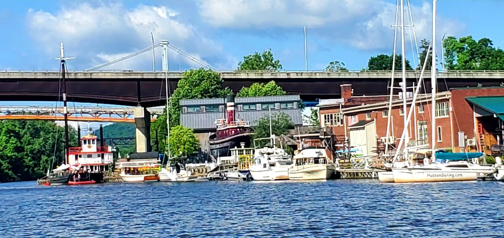 Heading further north, we passed the Catskill Mountains. I skied in some small ski areas in these mountains years ago. They sure are beautiful from the river.